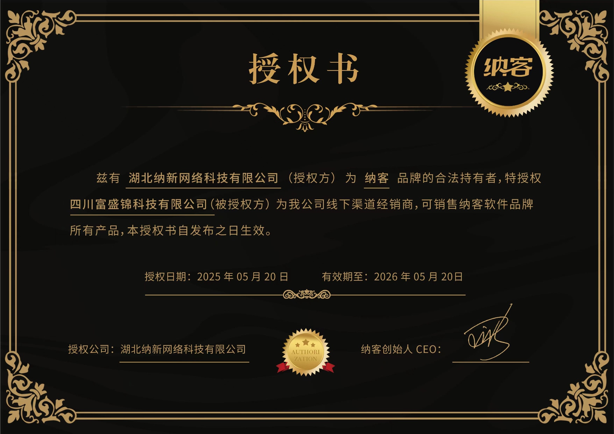 纳客授权证书