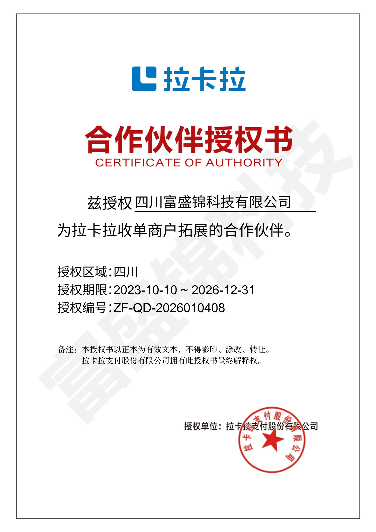 拉卡拉授权书